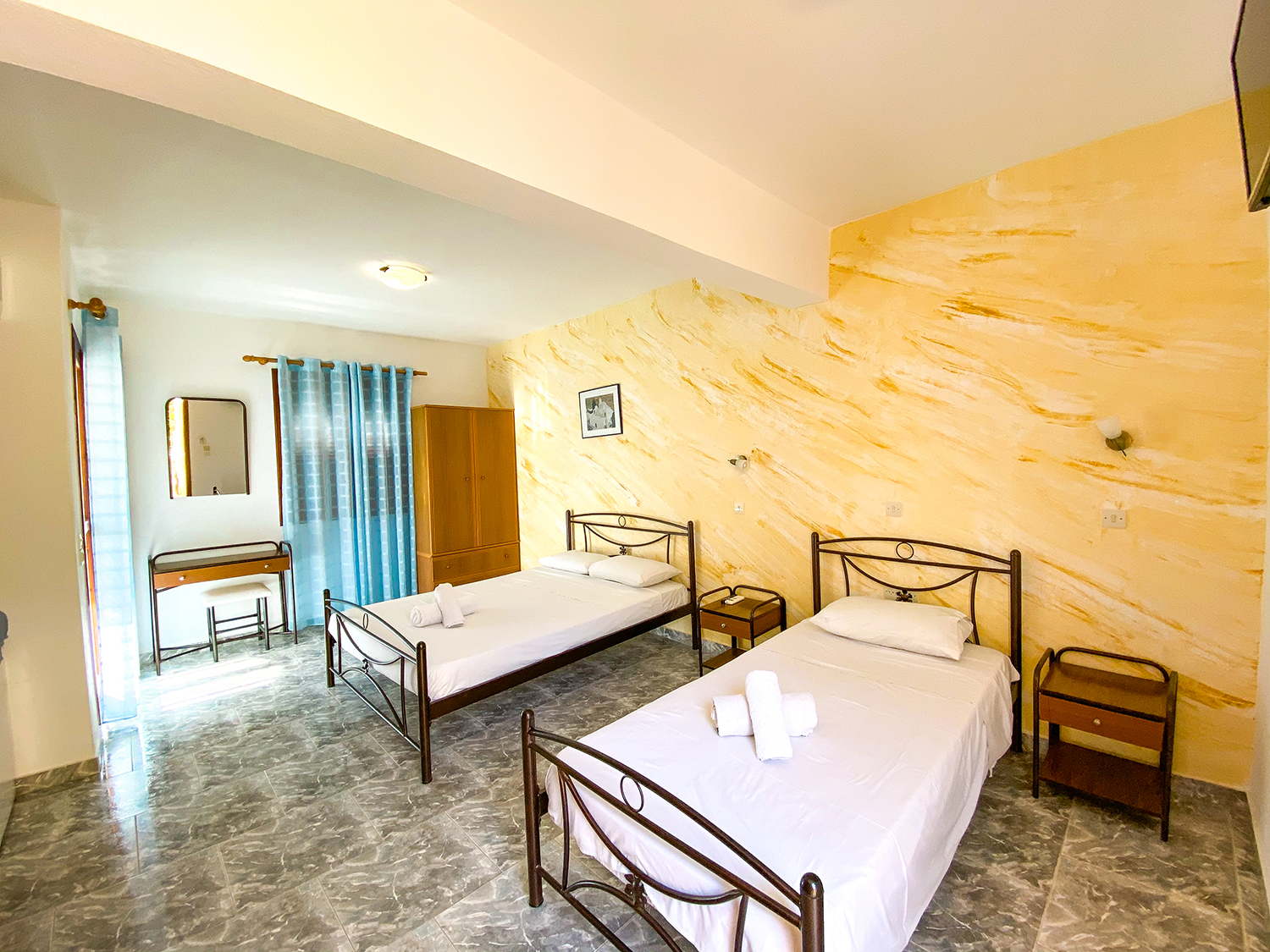 Studio-Apartment with Seaview is a great choice for a relaxing vacation for families with children or a group of friends. This huge studio of 28 sqm can provide 1 double bed and 2 single beds for up to 4 people.