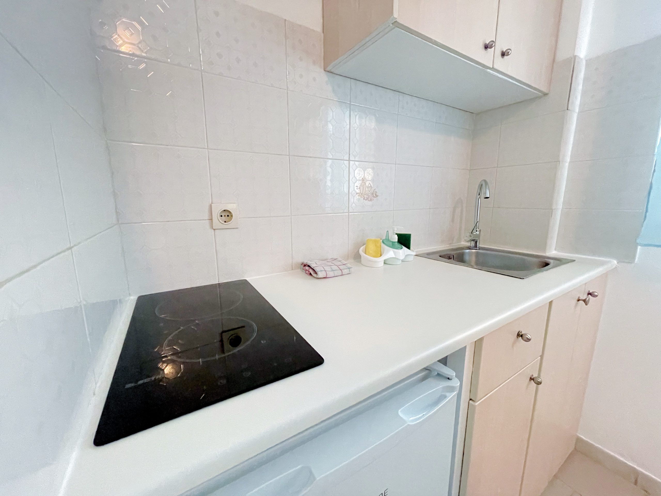 The studio is also supplied with kitchenette, fridge, wardrobe a makeup mirror and chair.